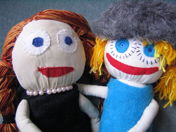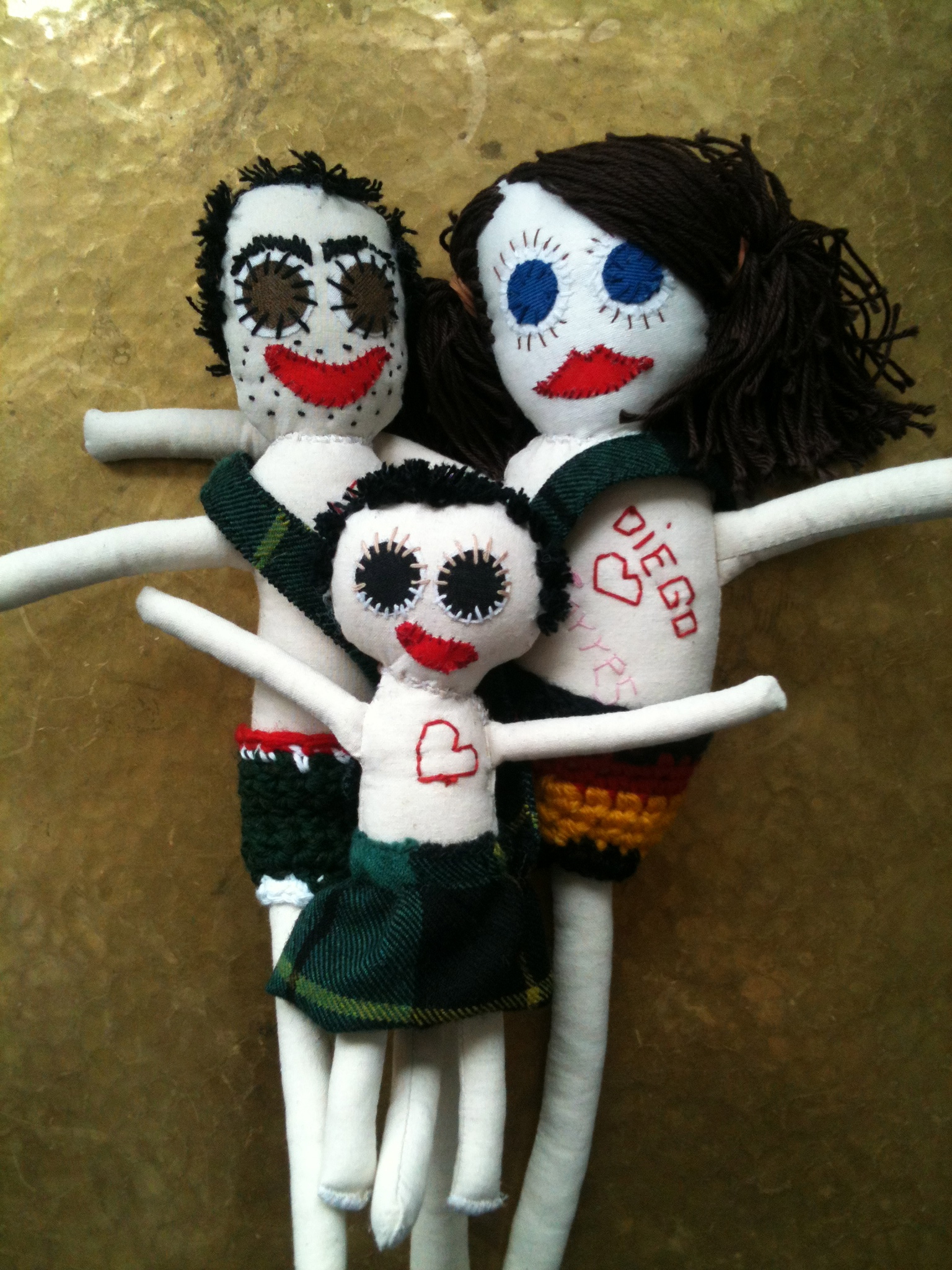 Die Puppen und deren Bekleidungen sind handgenäht und nach Vorlage von Fotos gestaltet.